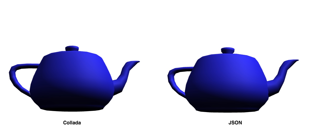 Where a delivery format should be as small as possible and optimized for parsing by the receiving end, an interchange format doesn't have such requirements, it should just make the exchange of models between 3D authoring tools painless. Because Collada is XML it is rather verbose. And to parse a Collada, Three.js has to loop over every node of the tree and convert it to a Three.js 3D object.