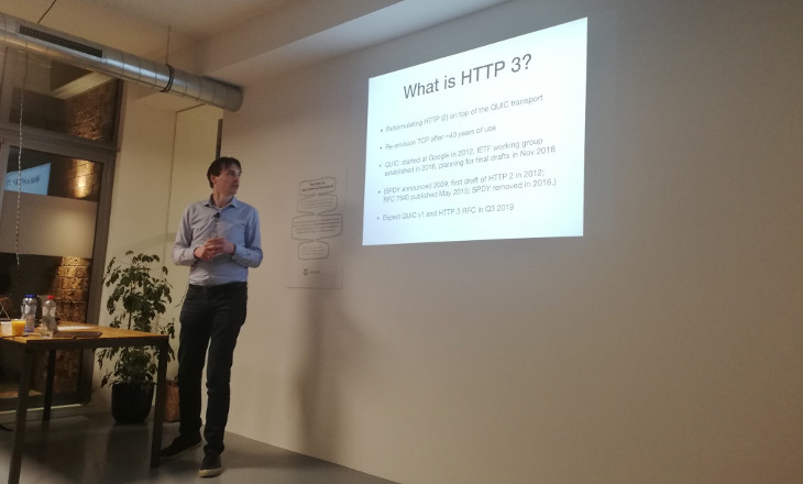 Dirkjan talked about Quinn, his Rust implementation of the QUIC protocol, which is the underlying protocol of HTTP 3. The various problems addressed by QUIC in HTTP 3 were discussed, such as the head-of-line-blocking, and how TLS-like connections are established. Quinn provides separate crates for the QUIC state machine, the HTTP 3 implementation and an implementation that runs on Linux using Tokio. Organizing the project in separate crates like this sets an example for other crate maintainers. Dirkjan also discussed other (Rust) implementations of HTTP 3, and the politics involved coordinating between them.