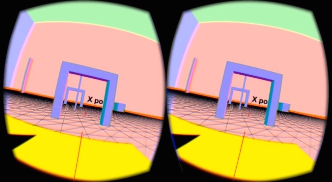 When wearing an Oculus, you are positioned in the middle of this orientation cube and you can look to all sides of the cube by moving your head. You can move around in the world with the arrow keys of your keyboard.