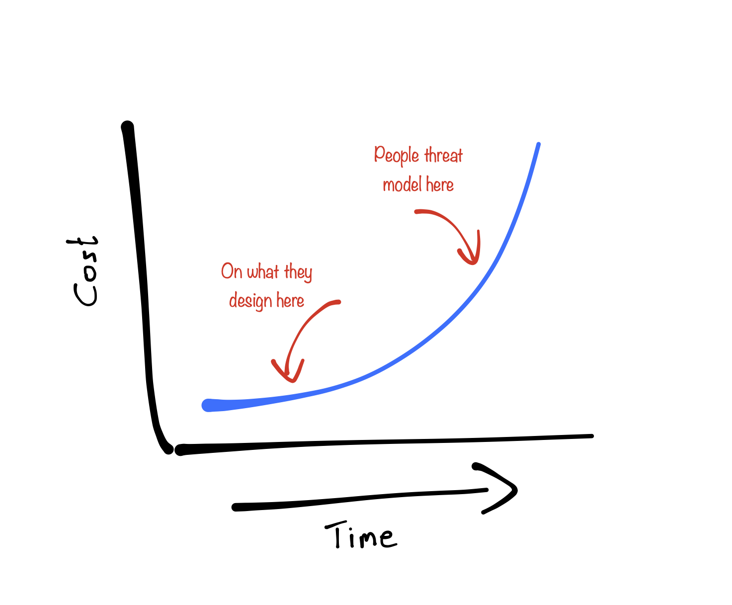 - Starting on a threat model early on will save a lot of time, and therefore money, later on, as requirements are a lot cheaper to add in the beginning of a project.